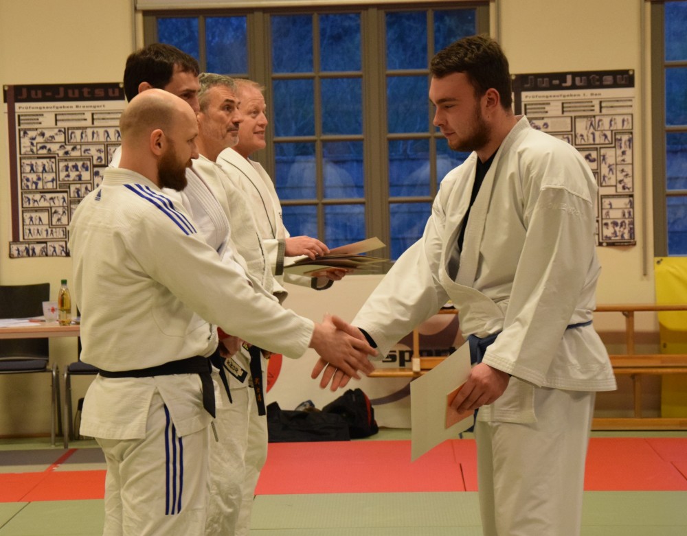| 02.12.2017 | Landesprüfung in Zeitz David Borschke legt die Prüfung zum 1. Kyu (Braungurt) ab. |