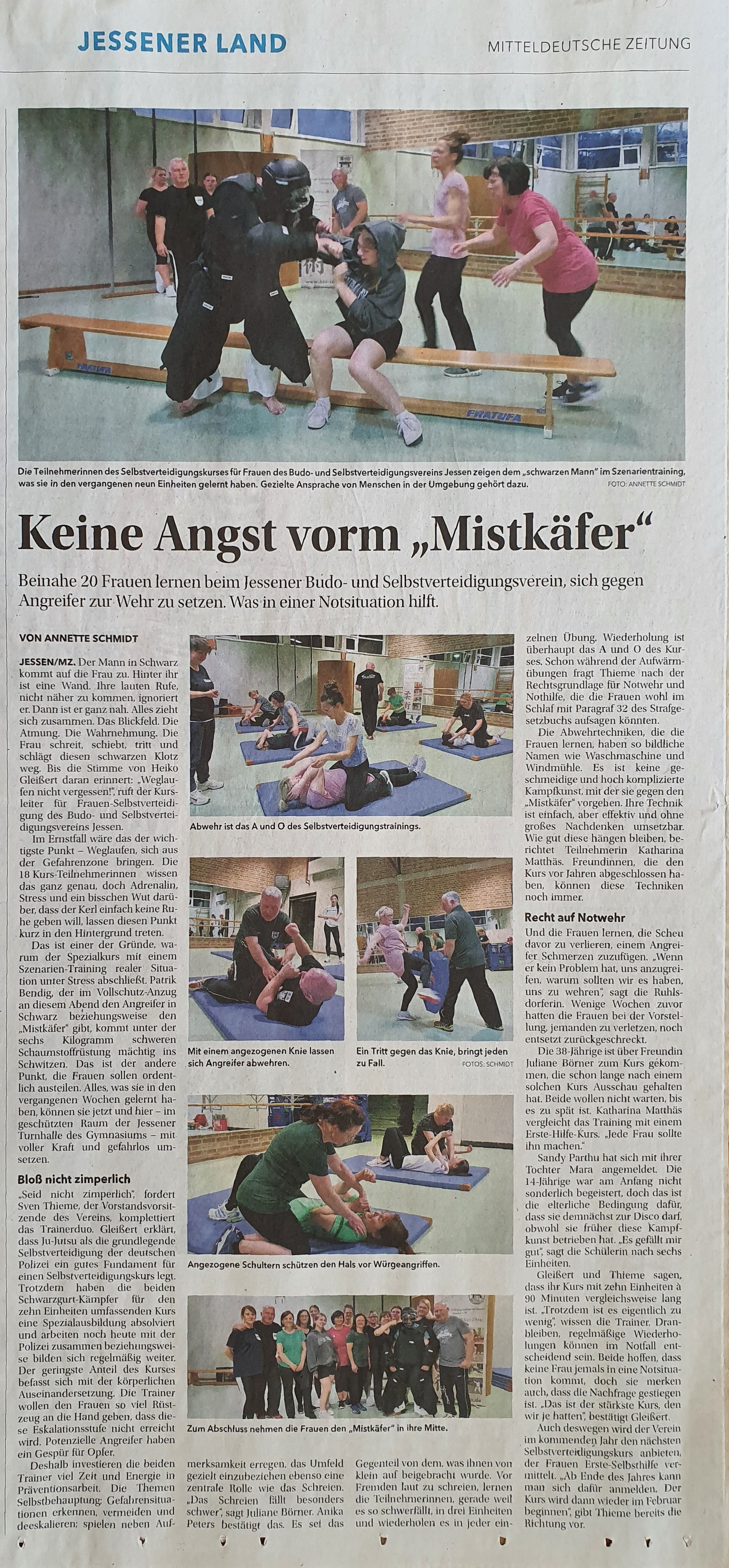 Das hat die Mütter auf die Idee gebracht, beim Jessener Budo- und Selbstverteidigungsverein nach einem speziellen Selbstverteidigungskurs zu fragen. Der Vorstand unter dem Vorsitzenden Sven Thieme hat das gern aufgegriffen. „Wir haben ein Konzept erstellt und uns an der Ju-Jutsu-Akademie in Zeitz schulen lassen“, berichtet Heiko Gleißert, Schatzmeister im Verein.