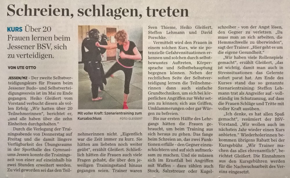 Keinesfalls soll es der letzte Kurs für Frauen-Selbstverteidigung gewesen sein. „Bei ausreichend Nachfrage legen wir gern wieder los“, so Gleißert. (mz)