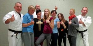 Im Januar startete dann der erste Kurs mit sechs Frauen und Mädchen, darunter die beiden Mutter-Tochter-Gespanne. Steffen Lehmann ergänzt das Trainertrio. Neben den praktischen Übungen vermittelt er den Teilnehmerinnen auch die Rechtsgrundlagen für Notwehr und Nothilfe.